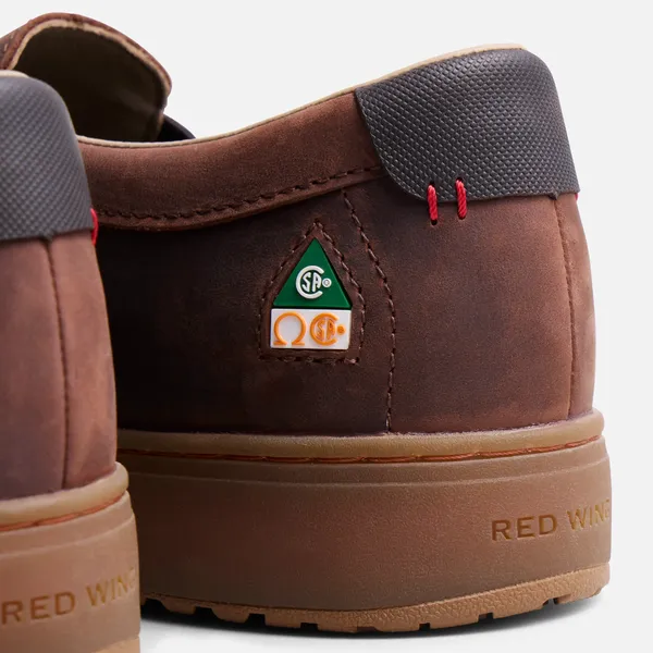 As comfortable as an athletic shoe but built to deliver new levels of lightweight toughness and versatility, this puncture-resistant slip-on can handle any light-duty office-to-floor environment. It incorporates classic Red Wing quality details and uses advanced and eco-friendly materials to optimize comfort and durability, at the lowest weight. The nubuck leather upper, aluminum safety toe, and electrical hazard protection surround the foot with safety features, while the TredLucent outsole delivers best-in-class slip, oil and chemical resistance. Great for warehousing, transportation and trades like architecture and engineering that require outdoor jobsite visits.