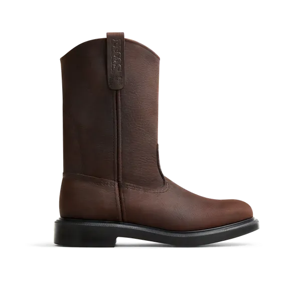 Walk all over hard work with this heavy-duty, easy-on and easy-off pull-on boot built for harsh work environments. A Red Wing Leather upper and single-density, direct-molded urethane sole deliver superior durability, traction and chemical resistance for jobs in oil and gas, construction, manufacturing and railroad. The leather extends high up the calf for added ankle support and protection.
