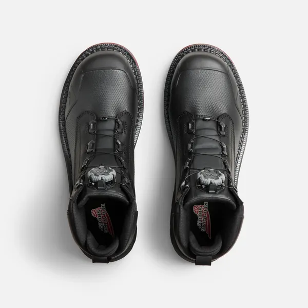 Dial in a uniform fit in these slip-resistant work boots with the BOA® Fit System that deliver heavy-duty performance without the extra weight and bulk. Built with the latest lightweight materials and design advancements, they bring a new level of durability, comfort, and protection to the most demanding environments. Advanced waterproofing on the PU-coated leather upper helps to keep the feet dry, while a high-rebound midsole upholds all-day comfort. The non-metallic safety toe and electrical hazard protection provide additional jobsite confidence. Underneath, the HD Pivotal outsole provides best-in-class chemical and heat resistance. Recycled content materials are used throughout. Ideal for outdoor construction, carpentry, and other trades that involve lots of kneeling.