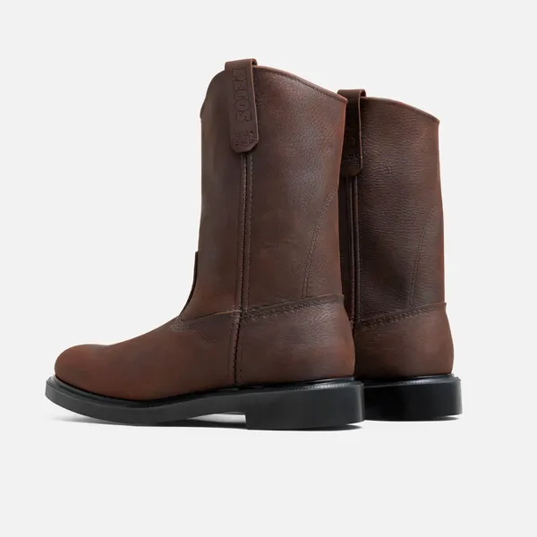 Walk all over hard work with this heavy-duty, easy-on and easy-off pull-on boot built for harsh work environments. A Red Wing Leather upper and single-density, direct-molded urethane sole deliver superior durability, traction and chemical resistance for jobs in oil and gas, construction, manufacturing and railroad. The leather extends high up the calf for added ankle support and protection.